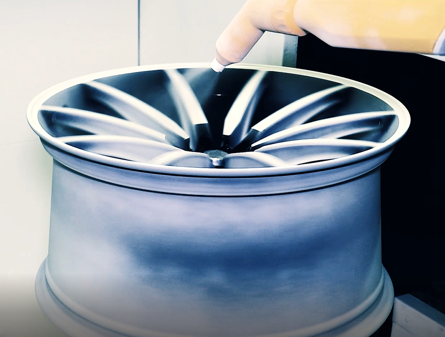 Im letzten Bearbeitungsprozess wird ein Acrylpulver-Klarlack eingebrannt. Dieser Klarlack schützt vor Verschmutzung und Korrosion und verleiht der Felge einen perfekten Glanz. Bei matten Felgen wird anschließend ein mattlack appliziert.
